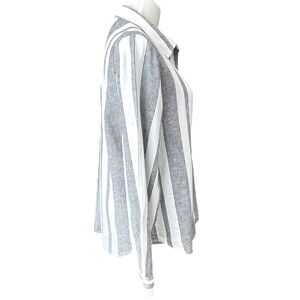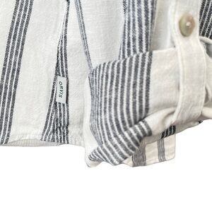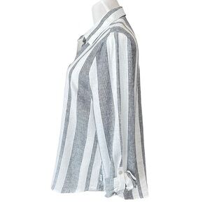 Orvis Linen-Blend Women’s Navy Blue & White Striped Blouse Size Medium