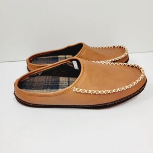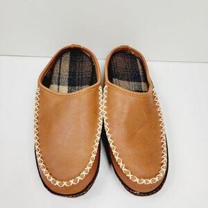 Orvis Lodge Brown Leather Slip On Mocs Slippers Size 9