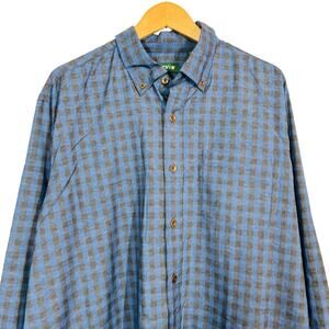 Orvis Long Sleeve Checker Button Up Shirt Casual Blue Black Sport - XL