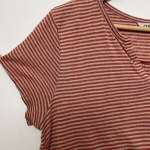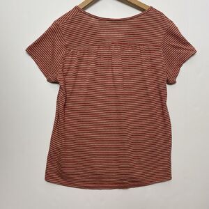 Orvis M Red Striped 100% Linen T-shirt Jersey Knit Split Neck Short Sleeves