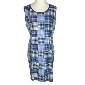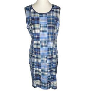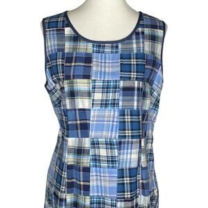 Orvis Madras Plaid Patchwork Shift Dress Blue Sleeveless 14 Cottagecore Country