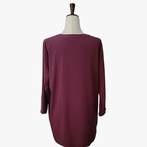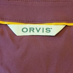 Orvis Maroon Notiched V-neck 3/4 Sleeve Zip Pocket Top Size L