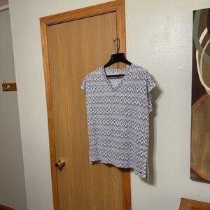 Orvis Medium Multi-Color w/Geometric Print Cap Sleeve V-Neck Knit Top - EUC