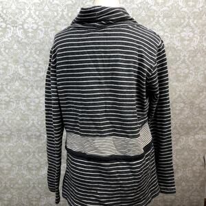 Orvis Medium Womens Gray Ivory Striped Cowl Neck Drawstring Waist Tunic Sweater