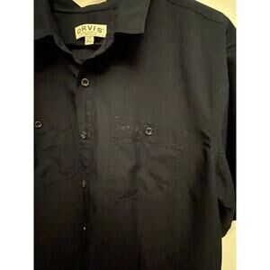 Orvis Men Short Sleeve Button Down Tech Shirt Navy UPF 30+ Fish Outdoor Large