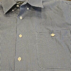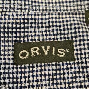 Orvis Men XL Cotton Black White Check Button Down Short Sleeve Casual Shirt
