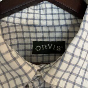Orvis Men's 100% Linen Button Down Collared Plaid Preppy Business Shirt SZ L