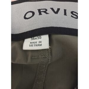 In wonderful clean condition. The Orvis Men's Trek Pant in size 36x30 is a versatile and comfortable option for travel, casual wear, and workwear. Made from a durable blend of nylon and spandex, these green pants feature a high-rise waist and a straight leg style. The 6 pockets, including 2 zippered pockets, provide plenty of storage for your essentials. With water-resistant fabric and comfort stretch features, these pants are suitable for all seasons and guarantee a practical and comfortable fit. Perfect for the man on the go, these Orvis pants offer both style and functionality for everyday use.