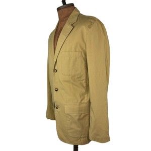 Orvis Mens 40R Blazer Jacket 3 Buttons Tan 100% Cotton Vintage Multi Pockets