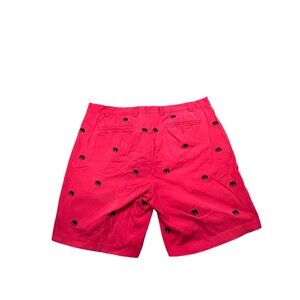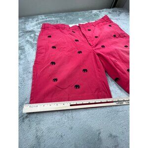 These red Orvis shorts feature a unique embroidered elephant pattern, offering a stylish and casual look. Crafted from cotton, they are comfortable and durable, ideal for various casual occasions.