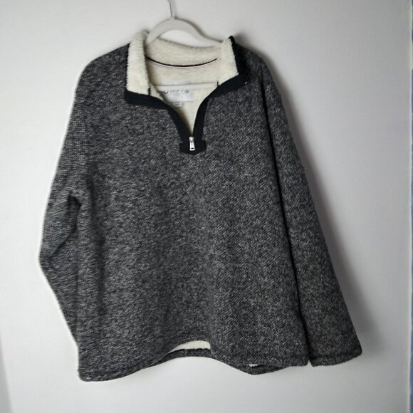 Stay warm while looking great on this favorite pullover from Orvis. Black heather knit in the outside and soft cozy sherpa in the outside.