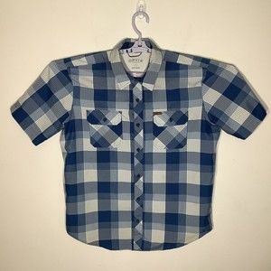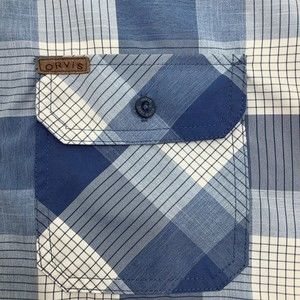 Orvis Mens Classic Collection Short Sleeve Button Up Shirt Blue Plaid Size Large
