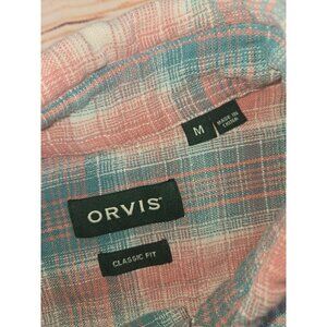 Orvis Mens Classic Fit Button-Up Plaid Shirt Medium Pink & Blue