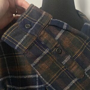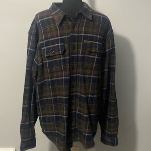 Orvis Men’s Flannel Shirt 100% Heavy Cotton Blue & Brown Plaid. Chest pockets and side seam hand pockets. Sz XL. Very nice condition