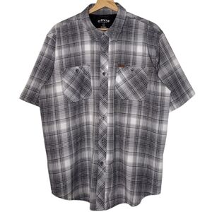 Orvis Men's Gray Plaid Short Sleeve Classic Casual Button Down Shirt Sz L