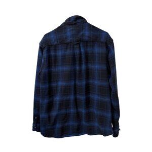 Orvis Mens Heavy Blue & Black Plaid Flannel Button-Up Shirt L