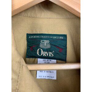 Crafted for the discerning sportsman, this Orvis jacket combines style and function with its durable cotton material and unique shooting design. The contrasting khaki and olive colors create a timeless look, while the Australian craftsmanship ensures top quality. This jacket is an excellent addition to any outdoor attire, blending tradition with practicality.