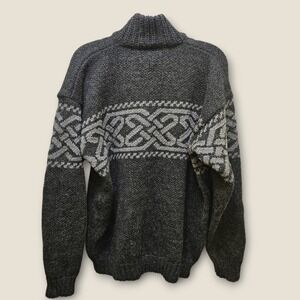 Orvis Mens L Pure New Wool Gray Nordic Shawl Button Neck Sweater Ireland