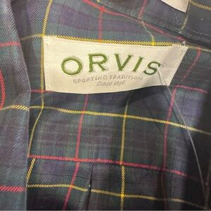 Excellent condition. LOT OF 2 Men’s Orvis button down plaid shirts. Long sleeves, 100% cotton, front button down pocket, button down collars. 1- is a black watch plaid ( black. Green & blue ) 1- is green, lavender & red. Size large. See photos for measurements.