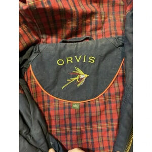 Orvis Men’s Large Navy Hooded Coat Plaid Lined. Condition is Pre-owned. Shipped with USPS Ground Advantage.