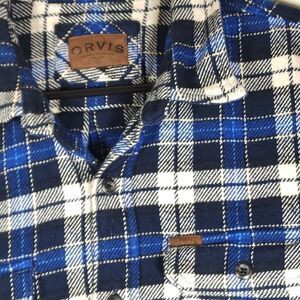 Orvis Men's Sz Large Blue Thick Plaid Long sleeve Flannel Button Down Shirt
