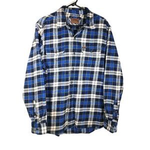 Orvis Men's Large Cotton Blue Thick Plaid Long sleeve Flannel Button Down Shirt