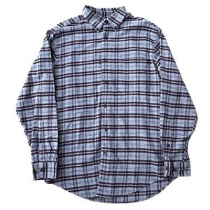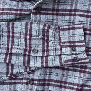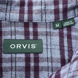 Orvis Men’s Lodge Plaid Luxury Flannel Shirt Heather Gray Burgundy Size Medium
