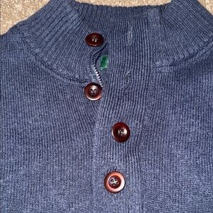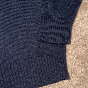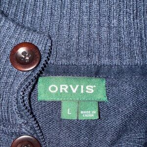 Orvis Men's Merino Wool Navy Blue Sweater with Quarter Zip Button Detail - Large