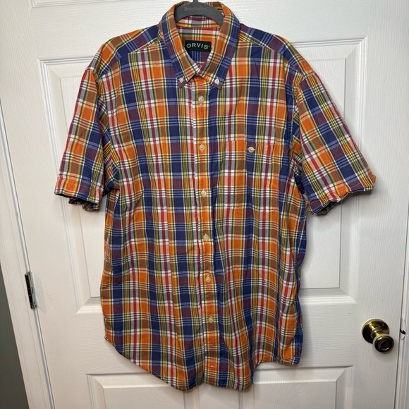 Orvis Men's Multicolor Plaid Madras Shirt 100% Cotton Size Large GUC