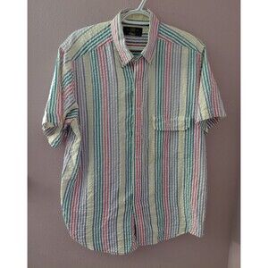 Orvis Men's Multicolor Striped Short Sleeve Seersucker Button Down Shirt Size L