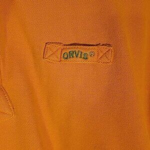 Orvis Mens Orange Polo Shirt W/ Black Patches Made In Peru L-T
