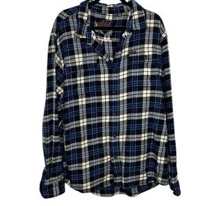 Orvis Men's Plaid Flannel Button Down Shacket Size XXL Black Blue Casual Cozy