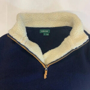 Orvis Men's Quarter Zip 100% Lambswool and Leather Long Sleeve Pullover Size L
