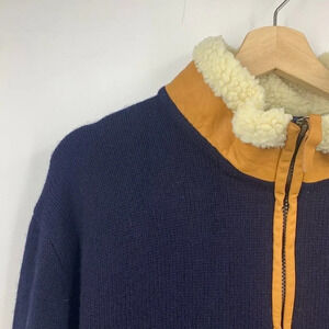 Orvis Men's Quarter Zip 100% Lambswool and Leather Long Sleeve Pullover Size L