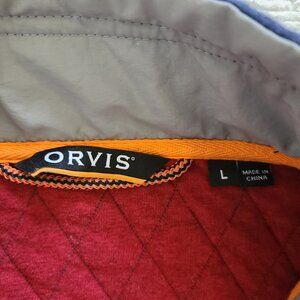 Cozy and classic Orvis quilted snap pullover in men’s size Large.