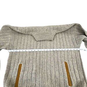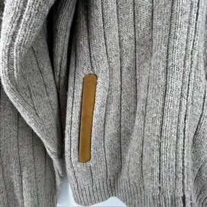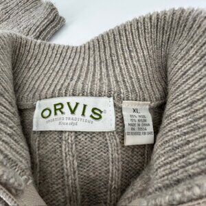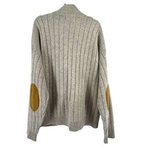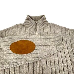Orvis Mens Rib Stitch Sweater XL Beige Zip Front Wool Blend Elbow Patch Jacket