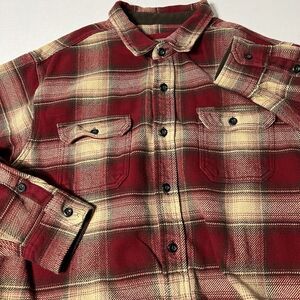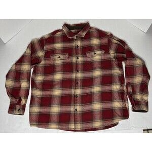 Orvis Mens Shirt Jacket Red Heavy Flannel Plaid Shacket Pockets Size XXL