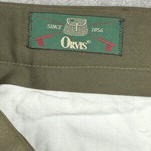 These Orvis Men's Shorts in size 42 are a stylish and comfortable choice for casual occasions. The pleat front design and 5 pockets add a touch of functionality, while the soft polyester fabric in olive green color makes them perfect for the summer, fall, and spring seasons. With a zip closure and mid-rise fit, these shorts are easy to care for with machine washable instructions. The classic style and solid pattern make them versatile for various settings, whether for outdoor activities or everyday wear.