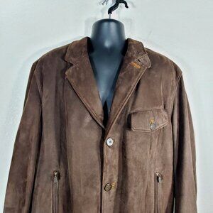 Orvis Mens Size 48 L Brown Genuine Leather Bandera Blazer Hunting Jacket Coat