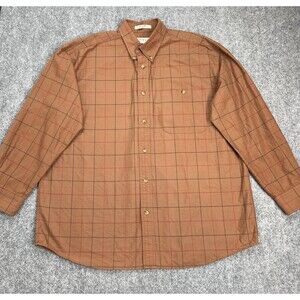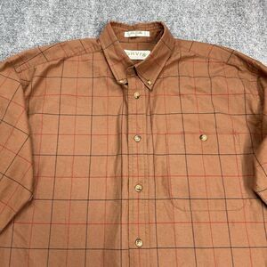Orvis Mens Size XL Long Sleeve Button Front Brown Plaid 100% Cotton