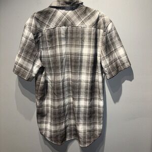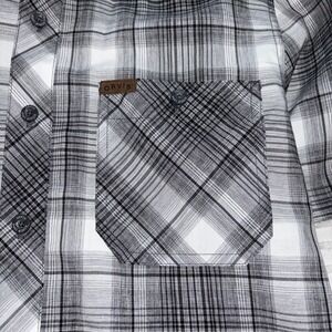 Orvis Men's SzS Short Sleeve Tech Shirt Button Down Gray Plaid Hiking UPF