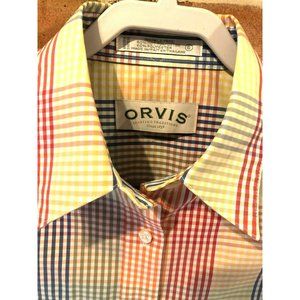 Orvis Men's Wrinkle Free Cotton/Poly L/S Button Shirt Rainbow Madras Plaid Small