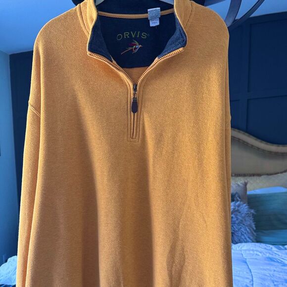 Orvis Men's XL Pullover Sweater 1/4 Front Zip Mustard 100% Cotton VERY NICE!