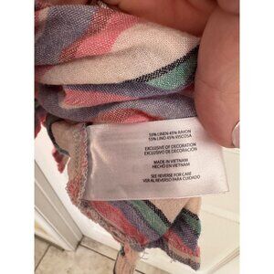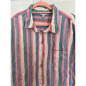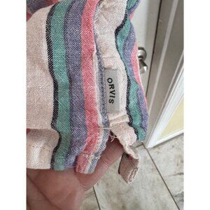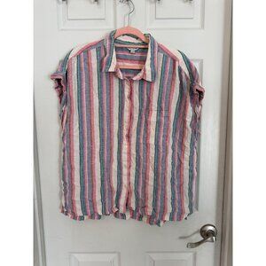 Orvis Multi-Color Cap Sleeve Striped Button Down Linen Blend Blouse Size XL