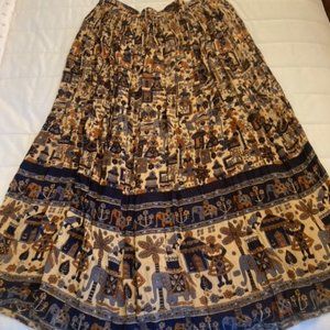 This women's Orvis multicolor patterned long skirt is a size XL and is made out of 100% rayon. It has a stretchy waist band and is 38 1/2 inches in length with pockets. This skirt is in great condition with no rips, tears or stains.