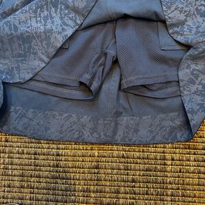 Stylish navy skort with subtle pattern. Features convenient side pockets. Ideal for casual outings.
