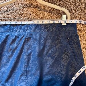 This elastic on this skort has a nice width. It has a nice blue-on-blue pattern. Two pockets in front, two pockets in back.
