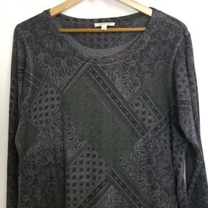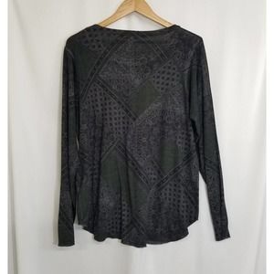 Orvis Olive Green Charcoal Gray & Black Print Light Weight Sweater Size XL
