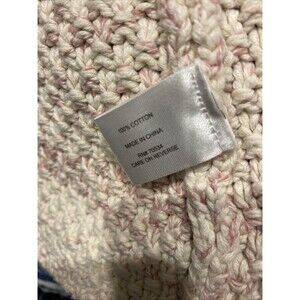 Orvis Open Knit Cardigan Womens Buttonless XL Pink Off White Front Pockets