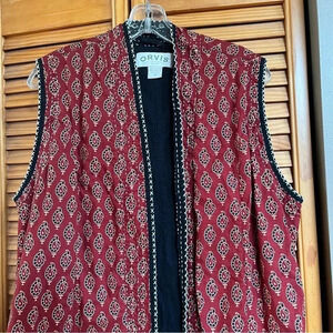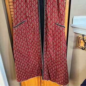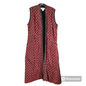 Orvis Open Overcoat Paisley Indian India Sz S Red Stitched Western Long Vest